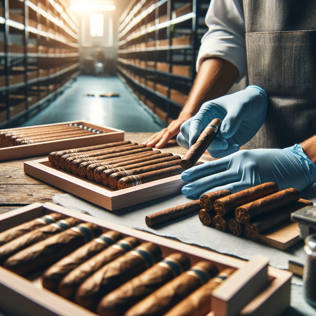 완성된 시가는 품질 검사와 포장 단계를 거칩니다.